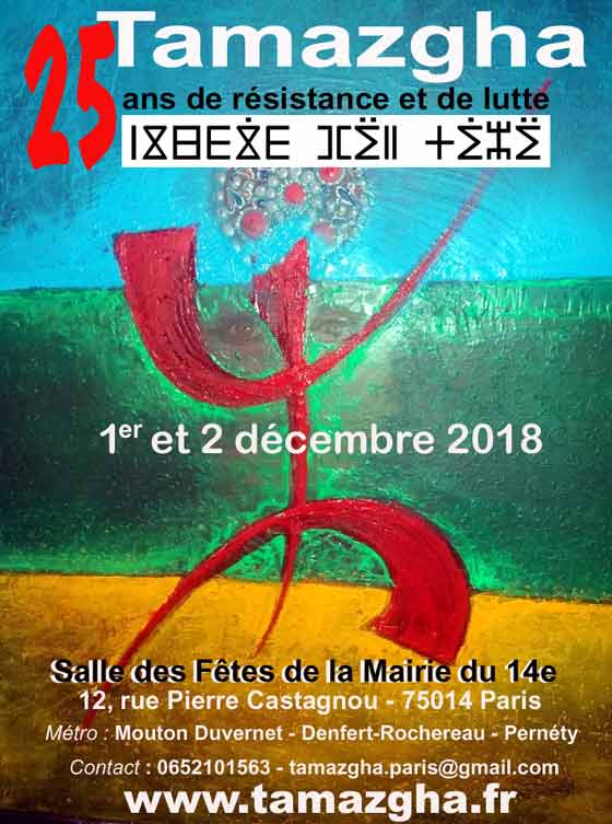 Pour marquer ses vingt-cinq ans, Tamazgha organise un évènement les 1er et 2 décembre 2018 à Paris, un évènement qui s’inscrit dans la droite ligne de son combat…
