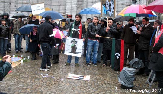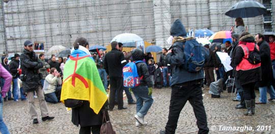 Des représentants de Tamazgha (Paris) étaient présents à ce rassemblement. Une déclaration signée par trois organisations (Tamazgha, Libyan Working Groupe et Tamunt n Imazighen n Libya) a été rendue publique à l’issue de ce rassemblement.