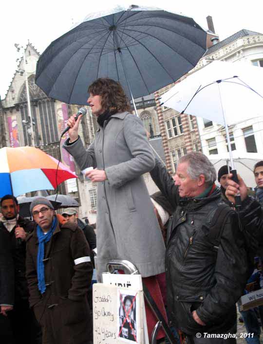 Quelques personnalités politiques hollandaises étaient présentes au rassemblement et avaient pris la parole pour exprimer leur solidarité avec las Libyens en lutte et dénoncer la folie meurtrière de Kadhafi.