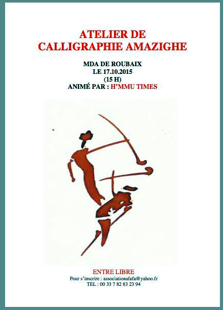 L’association AFAFA organise un atelier de calligraphie amazighe le samedi 17 octobre 2015 à 15h00.
