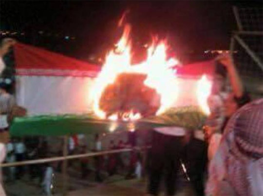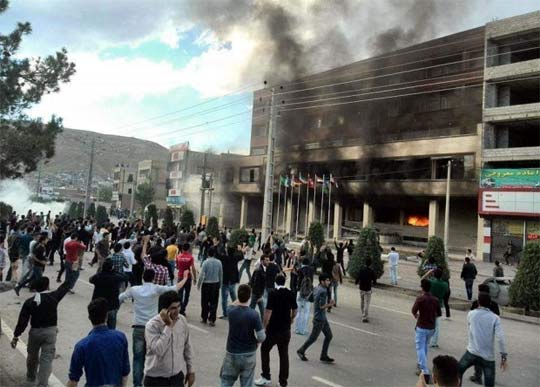 Ce qui est arrivé à la jeune Farinaz n’a pas laissé indifférents les habitants de la ville kurde qui sont sortis dans les rues le 7 mai pour dénoncer cet abus de pouvoir des membres du régime iranien. Scandalisés par le décès d’une jeune fille innocente et qui a voulu défendre sa dignité, ils se sont rassemblés devant l’hôtel Tarai où a eu le drame et ont laissé exploser leur colère allant jusqu’à mettre le feu à l’hôtel. Les manifestants sont restés dans la rue où des affrontements avec les forces de répression ont duré jusqu’à tard dans la nuit. Selon le site Solidarité ouvrière, "des drapeaux de la République islamique ont été brûlés" [3]. Les manifestants ont également mis le feu aux portraits de Khamenei et ont affronté les forces anti-émeutes avec lesquelles ils se sont battus. C’est le ras-le-bol de la dictature religieuse iranienne qui s’exprime dans cette ville kurde.