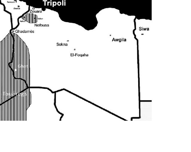 à une opinion assez répandue, il n’y ait pas eu de rupture au cours de l’insurrection entre Berbères du Nord et Touaregs libyens. Il y a lieu sur ce plan de distinguer soigneusement entre Touaregs libyens (Kel Ajjer) et mercenaires touaregs (nigéro-maliens) enrôlés dans les troupes de Kadhafi.