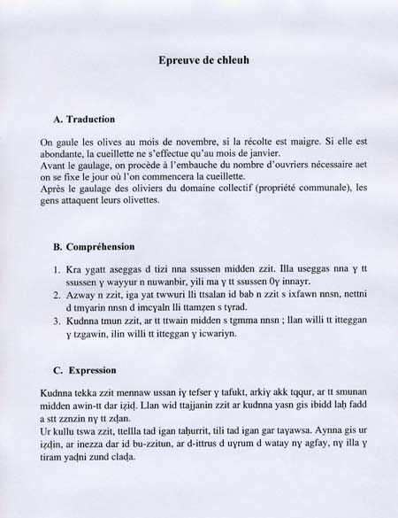 Nous publions ci-après la correction de l’épreuve-test de chleuh (tachelhit).