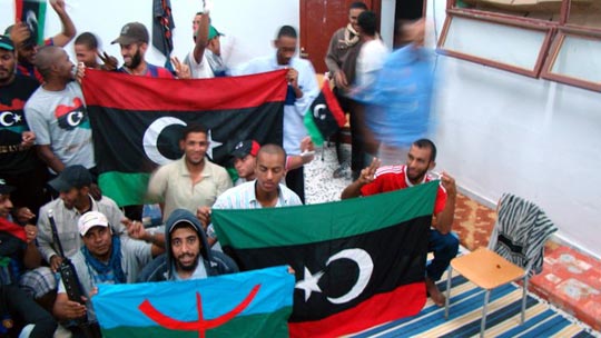 A la libération totale de la ville de Ghadamès, les révolutionnaires ont déployé le drapeau amazigh dans cette oasis.