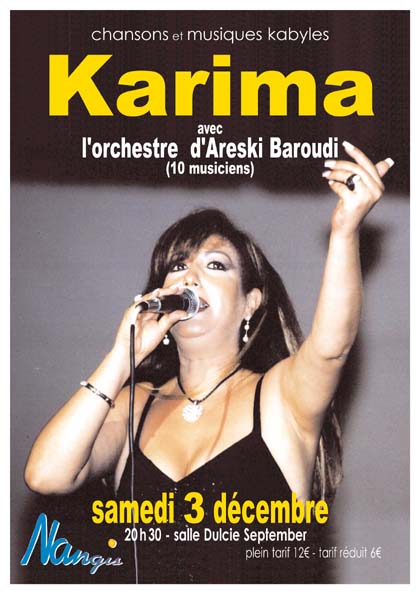 La chanteuse kabyle Karima se produira en concert le 3 décembre 2005 à 20H30 à la salle Dulcie September à Nangis (77-France).