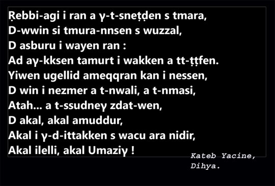 tamenddawt n’tmurt d’agudu i leqmen wat iccumer s tenslemt e taervuvt.tilleli d izerfan n umdan ur llin deg tiddeologit n’sen.wid yeselmaden i ugdud"yif taxert a tudert,pendant que arraw n’sen s¥arayenten di marican d l’europe si issurddiyen n leggaz d lpitrol.