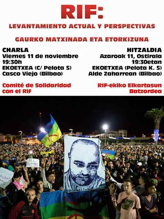 Ce 11 novembre voit également la communauté rifaine au Pays Basque se mobiliser ; elle appelle à un rassemblement à Bilbao à 19h30.