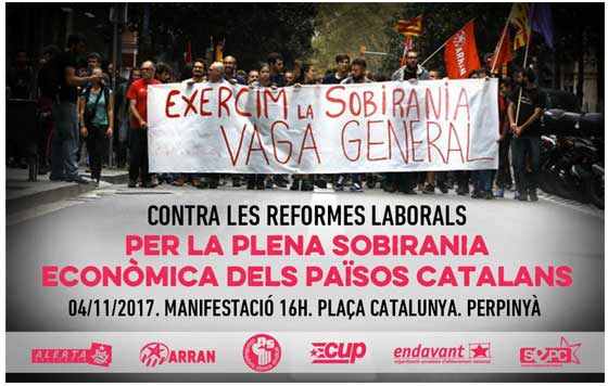 Le Conseil de la gauche indépendantiste (La Taula de l’Esquerra Independentista - TEI) appelle, quant à lui, à un rassemblement samedi 4 novembre en Catalogne nord. La manifestation se déroule à Perpinyà (Perpignan) à l’occasion de la Journée de la Catalogne Nord. L’appel est lancé sous le slogan "Contre la réforme du travail : pour la pleine souveraineté économique des pays catalans". L’événement doit commencer à 16h00 sur la Plaça de Catalunya à Perpinyà (Place de la catalogne à Perpignan).