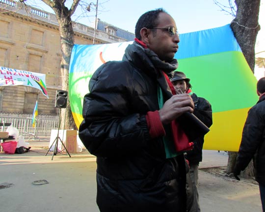 Masin Ferkal, de Tamazgha organisatrice du rassemblement a réitéré la solidarité de Tamazgha qui se sent partie prenante dans ce combat des Touaregs de l’Azawad. Pour lui, ce combat est d’autant plus celui de Tamazgha qu’il s’agit de la première initiative amazighe visant à libérer un territoire amazigh des mains du colonialisme. Ce combat pour la libération devra être celui de l’ensemble des Imazighen dont le pays est livré au colonialisme depuis quatorze siècles. Il a appelé l’ensemble des présents au rassemblement à se mobiliser et à mobiliser aux côtés des combattants de l’Azawad.