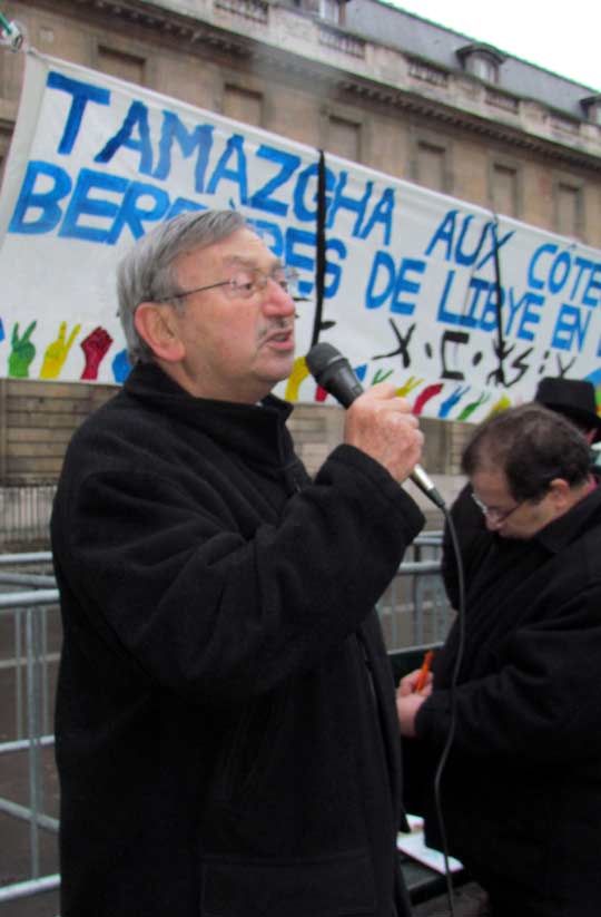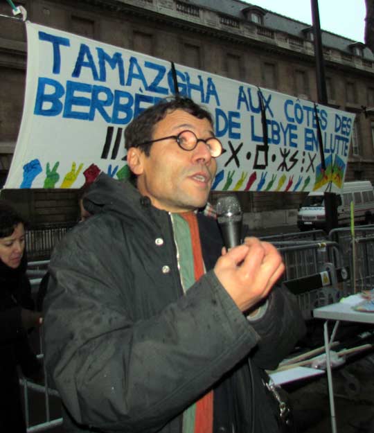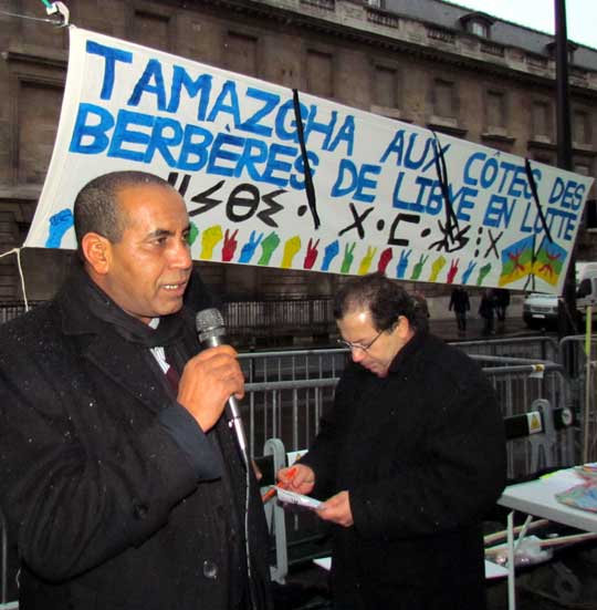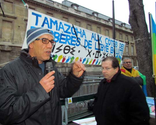 C’est pour leur rendre hommage ainsi qu’à tous ceux qui se battent en Libye pour que Tamazight et Imazighen recouvrent leur place naturelle sur leur propre terre ; pour rappeler à la communauté internationale, et en particulier à la France, leur devoir de veiller à la garantie des libertés et de l’égalité des hommes et des peuples ; mais aussi pour dénoncer les pratiques du CNT et de son gouvernement provisoire qui rappellent étrangement celles du régime déchu que de nombreux Amazighs et leurs amis ont bravé le froid et la pluie parisiens en répondant à l’appel de Tamazgha.