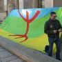 Dès 14h00 les premières banderoles ont été accrochées et un gigantesque drapeau amazigh a été brandi sur la Parvis des Droits de l’Homme.