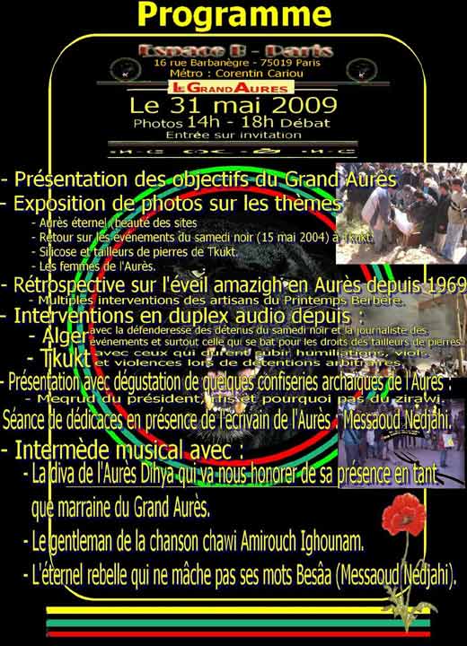 Dimanche 31 mai 2009, de 14h à 18h, la voix des Aurès retentira à Paris.