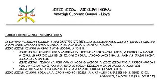 De ce fait, le Haut connseil des Amazighs de Libye (HCAL) déclare à l’opinion nationale et internationale ce qui suit :