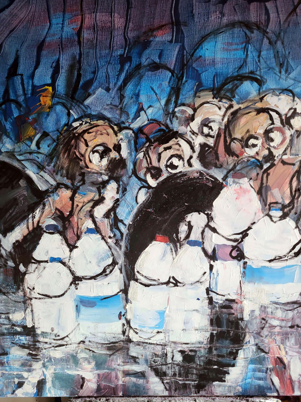 Les cœurs frémissent de peur au contact de l’eau. Ils enfourchent des embarcations de fortune : des chambres à air, des bouteilles colorées bricolées transformées en barques. Les mains crispées, serrées autour des sacs, des téléphones et des vivres emportés.