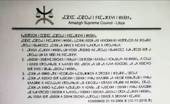 Suite aux derniers développements concernant la prétendue conférence de Palerme, le Haut conseil des Amazighs de Libye annonce à l’opinion publique locale et internationale ce qui suit :
