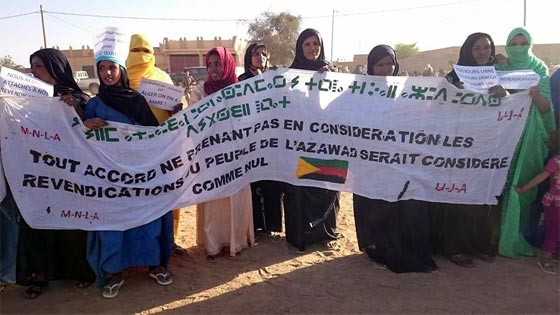 Dans la région de Timbuktu (Tombouctou), dans le sud-ouest de l’Azawad, ce sont près de deux cents personnes (chefs de villages, chefs de fractions, leaders d’opinion et cadres de l’Azawad) qui ont signé une déclaration en date du 28 février 2015 par laquelle ils ont fait savoir leur volonté d’œuvrer pour la sauvegarde des acquis de leur Révolution, rejetant ainsi le texte d’Alger dont ils ne se reconnaissent pas. Pour eux, l’Etat algérien qui n’a pas su garantir la mise en œuvre des accords antérieurs [3]ne saurait être garant d’accords crédibles aujourd’hui. Ils estiment que le Mali a fait preuve d’incapacité à construire une nation plurielle. C’est, entre autre, pourquoi ils s’opposent fermement à l’accord proposé par la médiation à Alger en date du 25 février 2015. Dans leur déclaration, ils informent la médiation et la communauté internationale qu’"aucun accord ne saurait être durable a fortiori définitif sans traiter la question de l’Azawad dans toute sa profondeur, et cela passe par l’acceptation sincère d’une réalité politique qui s’impose à savoir : le statut politico-juridique de l’Azawad pour mettre le destin des Azawadiens entre leurs mains, car ils représentent le seul rempart contre le terrorisme et donc la seule et unique solution pour la stabilité du sahel."
