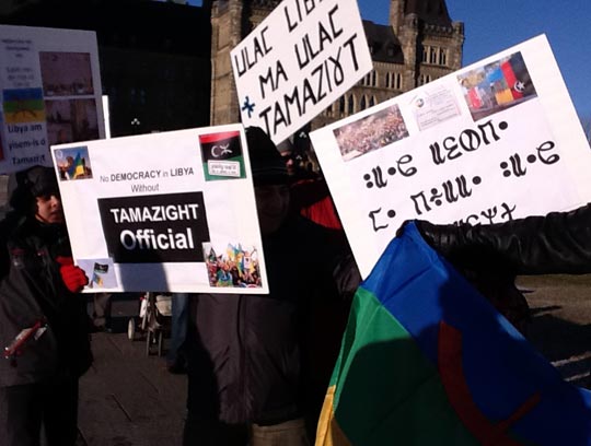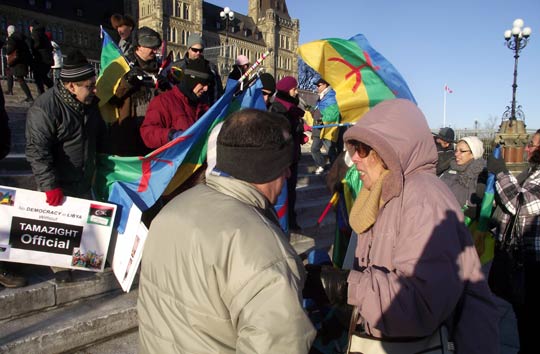 A Paris, Rennes, New-York, Boston, Ottawa et Montréal, des Imazighen et leurs amis sont sortis pour exprimer leur solidarité avec Imazighen de Libye en lutte. Des centaines de personnes ont bravé le froid et parfois la pluie (comme à Paris) pour répondre à l’appel des différentes associations et organisations qui ont tenu à dire aux Imazighen de Libye qu’ils sont à leurs côtés dans le combat qu’ils mènent pour Tamazight.