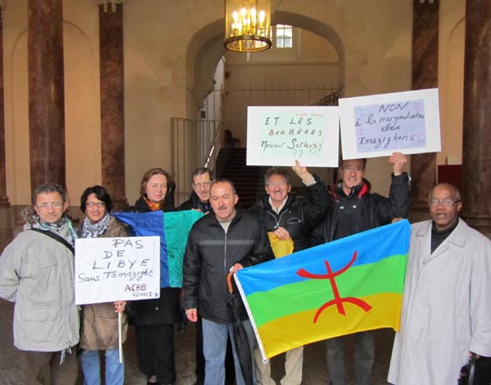 Ainsi tandis que l’Arabie saoudite et les pétromonarchies financent les partis salafistes en Tunisie, en Égypte et dans tout le Moyen-Orient et que la Ligue arabe, cautionne sans protestation du Conseil de Sécurité et de l’Assemblée générale de l’ONU, le massacre du peuple syrien, la contre-révolution s’organise pour interdire aux peuples amazighs et aux Touaregs de se regrouper dans un État fédéral berbère : Tamazgha. Mission qui semble impossible car depuis les rassemblements de soutien aux Imazighens de Libye et aux Touaregs, tenus ce 17 décembre dans une cinquantaine de villes dont Paris, New-York, Montréal, Ottawa et Berlin, la question amazighe, inscrite dans la vie politique internationale, ne peut plus être ignorée en France. Pendant la campagne électorale de 2012 (présidentielle et législatives), les Amazighs doivent s’impliquer avec tous les démocrates pour la défense des libertés menacées par l’islamo-fascisme et ses alliés gauchistes, dans la continuité des combats menés par l’Étoile Nord-Africaine dans les rangs de la classe ouvrière contre le fascisme et le nazisme. Combattre pour la défense des libertés et de la démocratie en France, c’est apporter le meilleur soutien possible aux Imazighens de Libye et aux Touaregs.