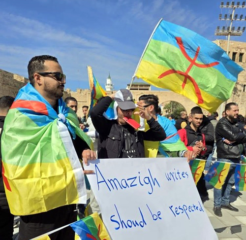 Une grande manifestation pacifique a eu lieu à la Place des Martyrs à Tripoli le mercredi 26 février pour dénoncer la profanation du drapeau amazigh, la multiplication des provocations visant les Amazighs notamment de la part de Trabelsi Imad, faisant fonction de ministre de l’Intérieur, qui alimente la haine et l’hostilité envers les Amazighs. Dans leur déclaration, lue par le président du Haut conseil des Amazighs de Libye (HCAL), les représentants des régions amazighes venus manifester à Tripoli ont tenu à réaffirmer leur condamnation de l’incident de profanation du drapeau amazigh ainsi que le silence des institutions étatiques. Ils exigent l’arrestation des coupables et demandent la démission du faisant fonction de ministre de l’Intérieur ainsi que du chef de la sécurité publique. Le lendemain, jeudi 27 février, un rassemblement s’est tenu devant le siège de la Mission d’appui des Nations Unies en Libye (MANUL) à Tripoli et les représentants du Mouvement amazigh ont remis à Hanna Serwaa Tetteh, représentante spéciale et Cheffe de la MANUL, une note de protestation dans laquelle ont été exposées diverses questions. Les représentants des Amazighs ont sollicité son soutien face aux attaques officielles et à la marginalisation qui les visent. La représentante des Nations unies en Libye a été priée d’user de ses pouvoirs afin d’interpeler les autorités libyennes pour prendre en considération les Amazighs et leurs droits dans le but de préserver la paix civile et la stabilité politique.
