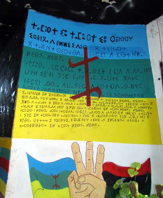 Présentation de "Taddart n Tlelli" (maison de la Liberté) à Ifran, Adrar n Infusen, en Libye. Ce bâtiment appartenait aux comités "révolutionnaires" de Kadhafi qui sont en quelque sa police politique. C’est autour de ces Comités qu’était organisée la répression que la tyrannie kadhafiste faisait régner à Ifran. Igrawliyen (révolutionnaires) d’Ifran se sont attaqué à ce bâtiment dès le début de la révolte libyenne et se sont emparé des locaux après avoir chassé les agents de Kadhafi. Ils ont saccagé l’ensemble des symbole du voyou (ses portraits, la statue de son livre vert, etc.).
