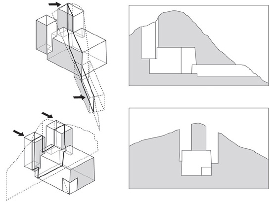« L’idée d’une chambre vide créée en creusant la montagne a évolué ensuite vers la création d’un espace caverneux, mais empli de tranquillité, vécue par l’avancée de la lumière solaire, puis de l’éclairage de la Lune.