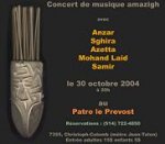24 octobre 2004, par MasinCette soirée qui sera animée par le poète Lahcène Ziani verra plusieurs artistes amazighs se produire :