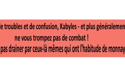 En ces temps de troubles et de confusion, Kabyles - et plus généralement, Amazighs - ; ne vous trompez pas de combat ! Ne vous laissez pas drainer (…)