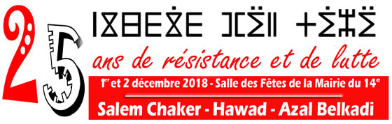 Vingt-cinq ans de résistance et de lutte, vingt-cinq ans à accompagner Imazighen dans leurs luttes contre ces monstres qui ont programmé leur disparition, vingt-cinq ans d’action et de présence sur le terrain à Paris pour porter la voix des Berbères.