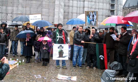 C’est la célèbre place "The Dam square" qui a accueilli ce rassemblement à l’appel de l’organisation "Libyan Working Group" pour manifester solidarité avec les Libyens qui affrontent la barbarie de Kadhafi depuis le 15 février.