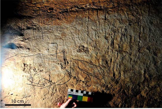 – L’étude des éléments de la découverte n’est pas encore définitive, et donc plusieurs détails seront précisés prochainement, surtout au niveau de la nature des gravures qui semblent constituer des représentations figuratives aux motifs fauniques. Les investigations sont menées dans le cadre d’une collaboration de scientifiques appartenant à l’Université Mohammed 1er (Oujda), l’Université d’El Jadida, l’Institut National des Sciences de l’Archéologie et du Patrimoine (Maroc) et l’Institut de Paléoécologie et de l’Evolution Sociale de Tarragone (Espagne).