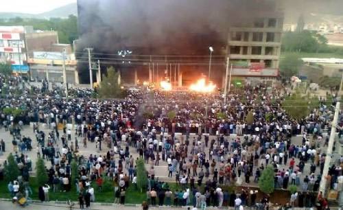 Ce qui est arrivé à la jeune Farinaz n’a pas laissé indifférents les habitants de la ville kurde qui sont sortis dans les rues le 7 mai pour dénoncer cet abus de pouvoir des membres du régime iranien. Scandalisés par le décès d’une jeune fille innocente et qui a voulu défendre sa dignité, ils se sont rassemblés devant l’hôtel Tarai où a eu le drame et ont laissé exploser leur colère allant jusqu’à mettre le feu à l’hôtel. Les manifestants sont restés dans la rue où des affrontements avec les forces de répression ont duré jusqu’à tard dans la nuit. Selon le site Solidarité ouvrière, "des drapeaux de la République islamique ont été brûlés" [3]. Les manifestants ont également mis le feu aux portraits de Khamenei et ont affronté les forces anti-émeutes avec lesquelles ils se sont battus. C’est le ras-le-bol de la dictature religieuse iranienne qui s’exprime dans cette ville kurde.