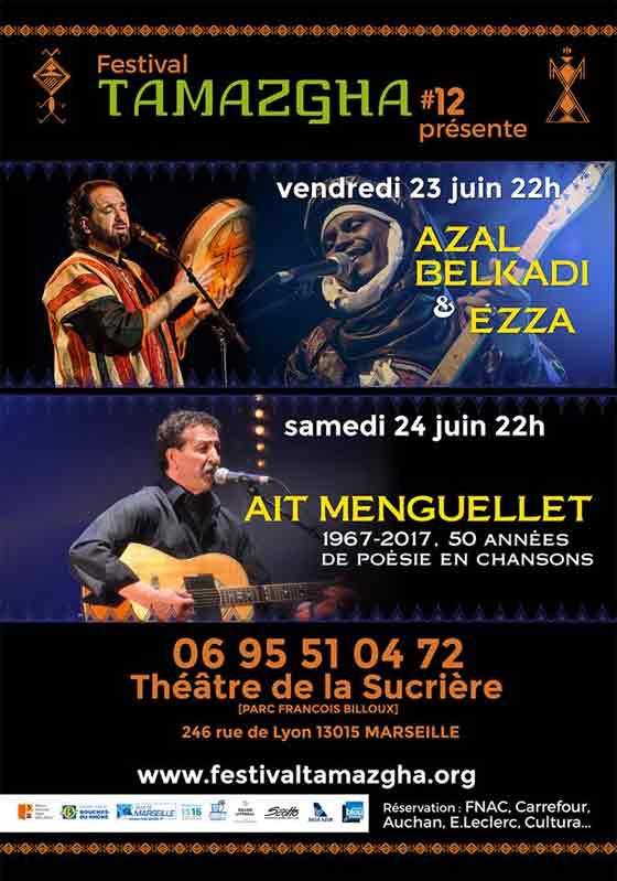 La douzième édition du festival Tamazgha se déroulera les vendredi 23 et samedi 24 juin 2017 à partir de 22h au théâtre de La Sucrière à Marseille.