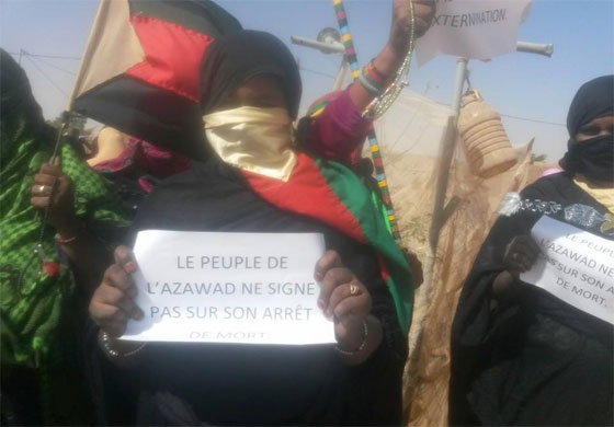 Les habitants de Tin-Tachara (In-Khalil) près de la frontière entre l’Azawad et le territoire contrôlé par l’Etat algérien, sont sortis très nombreux pour dénoncer le paraphe du document d’Alger et pour réitérer leur détermination à poursuivre leur combat pour la libération de l’Azawad.