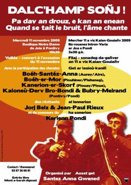 Le mercredi 11 novembre 2009, l’association Santez Anna Gwened propose une célébration-concert à la Basilique Notre-Dame de Joie, à Pontivy, à 15h30.