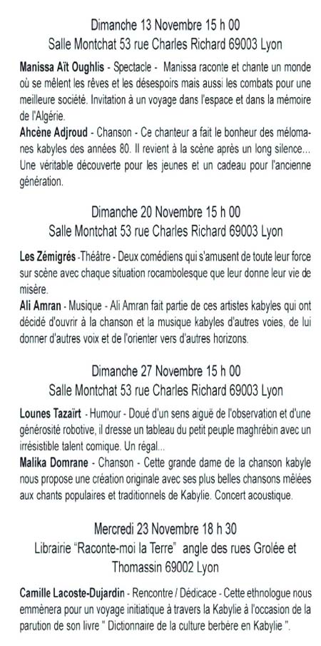 Accueil > Culture > Agenda (concerts, colloques, confèrences,...) > "Découvertes Berbères" à Lyon...