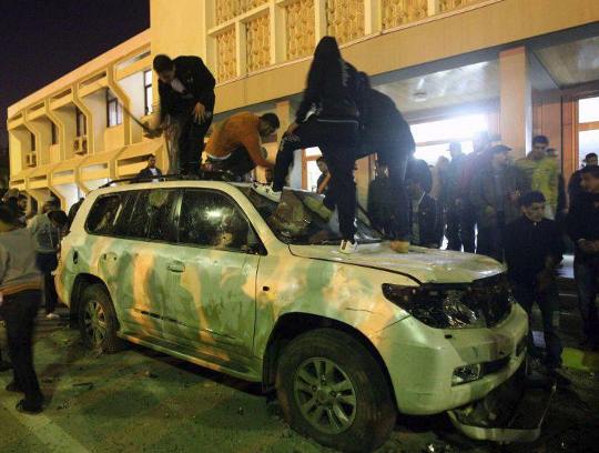 "Ils ont mis le feu à la façade, brisé des fenêtres et cassé l’une des voitures blindées qui se trouvait là. Des manifestants nous ont aménagé un passage et nous avons pu sortir, personne n’a été blessé. Je suis sorti d’un côté et Moustapha Abdeljalil (le chef du CNT) de l’autre", a dit à l’AFP par téléphone Fathi Baja, le responsable des affaires politiques du Conseil, qui se trouvait sur place.