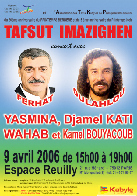 Ferhat, Oulahlou et d’autres artistes chantent à Paris le 9 avril 2006.