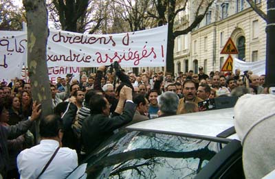 Quelque 2000 personnes se sont rassemblées lundi 31 octobre 2005 Place des Etats-Unis, devant l’ambassade d’Egypte à Paris à l’appel d’organisations coptes.