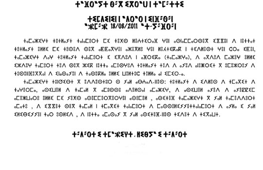 Le même jour, les organisations de la société civile d’Adrar n Infusen se sont réunies à Ifran et ont rendu publique une déclaration par laquelle ils rejettent la déclaration constitutionnelle du CNT et ont réitéré leur détermination à faire en sorte que Tamazight ne soit reléguée aux calendes grecques.