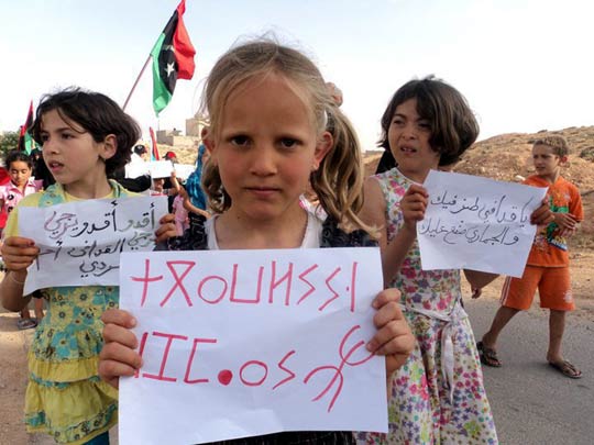 bonjour a tous et a toutes.......je suis amazigh d’algerie..normalement je devrai dire directement algerien parceque je suis un vrai..bref...ce que je voudrai dire à nos freres libyens qu’il ne faut jamais ceder a l’obscurantisme....a chaque fin d’une revolution en afrique du nord...c’est toujours les opportunistes qui apparaissent pour gerer le pouvoir et l’aprés guerre....faut pas etre solidaire ou sentimental sur ce fait...et apres...y’aura des revendications a propos de tamazight qui ne seront pas reconnu... et ça donnera la meme situation qu’au maroc ou l’algerie....donc vive la libye...et que ça commence des maintenant....on ne va plus perdre nos martyrs au detriment d’une langue sans culture que les opportunistes nous imposent....que les murs de tamazgha se fondent comme le mur de berlin.....anarez walla anekknu.