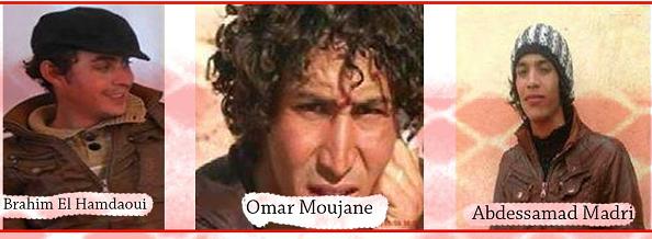 La dernière condamnation en date est celle de trois militants du Mouvement sur la voie de 96, arrêtés arbitrairement le 1er mars dernier. Il s’agit de Omar Moujane, Brahim Hamdaoui et Abdessamad Madri. Ces trois militants ont été condamnés le 24 avril 2014 à trois ans de prison ferme chacun par un tribunal de Ouarzazat. Ils ont été condamnés, entre autres, pour "constitution d’un groupe criminel, (…) rassemblement non autorisé, mise en difficulté de projets de développement dans la région, incitation au boycott de l’école, ( …), non comparution devant la gendarmerie royale".