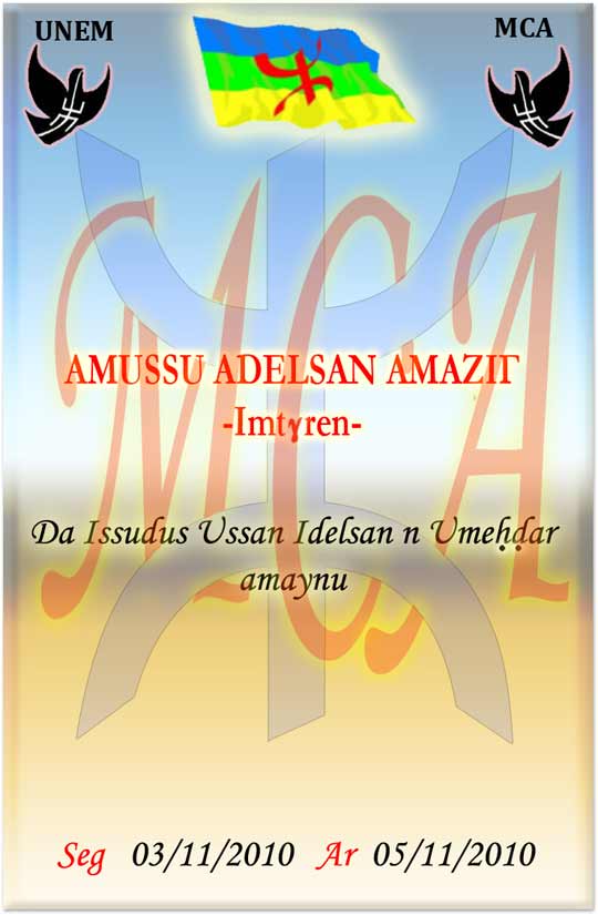 Les étudiants du Mouvement culturel amazigh (MCA) à Imteghren organisent des journées culturelles du 3 au 5 novembre 2010 à l’Université Mouloud Mammeri à Imteghren.