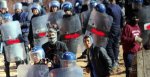 Photo retouchée (les petites tâches rouges sur les boucliers des policiers ont été rajoutées par nos soins).