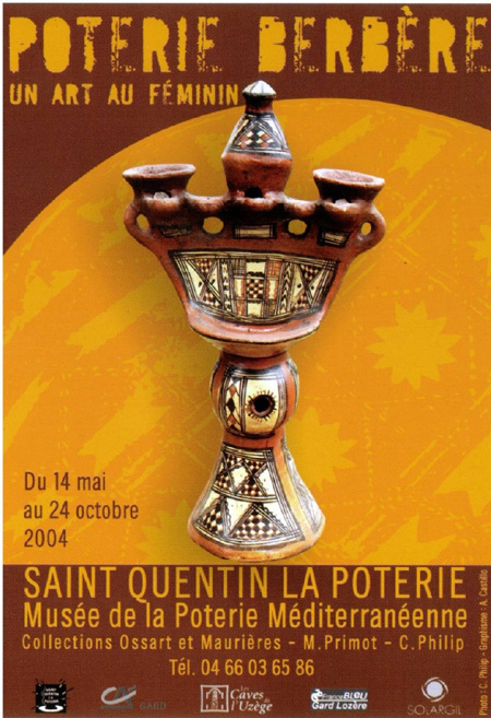 A Saint-Quentin-la-Poterie, l’on peut découvrir cet art amazigh en visitant l’exposition qui a lieu au Musée de la Poterie Méditerranéenne de mai à octobre 2004.