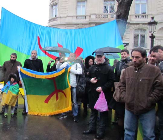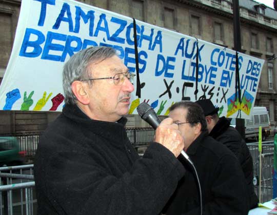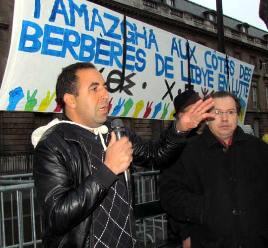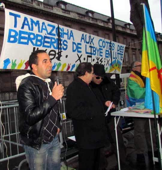 C’est pour leur rendre hommage ainsi qu’à tous ceux qui se battent en Libye pour que Tamazight et Imazighen recouvrent leur place naturelle sur leur propre terre ; pour rappeler à la communauté internationale, et en particulier à la France, leur devoir de veiller à la garantie des libertés et de l’égalité des hommes et des peuples ; mais aussi pour dénoncer les pratiques du CNT et de son gouvernement provisoire qui rappellent étrangement celles du régime déchu que de nombreux Amazighs et leurs amis ont bravé le froid et la pluie parisiens en répondant à l’appel de Tamazgha.