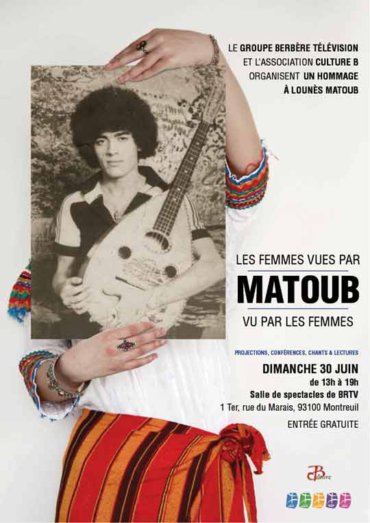 L’association Culture B. en collaboration avec le groupe Berbère Télévision organisent le dimanche 30 juin 2013 de 13h à 19h à Montreuil, une journée d’hommage à Matoub Lounès par les femmes.
