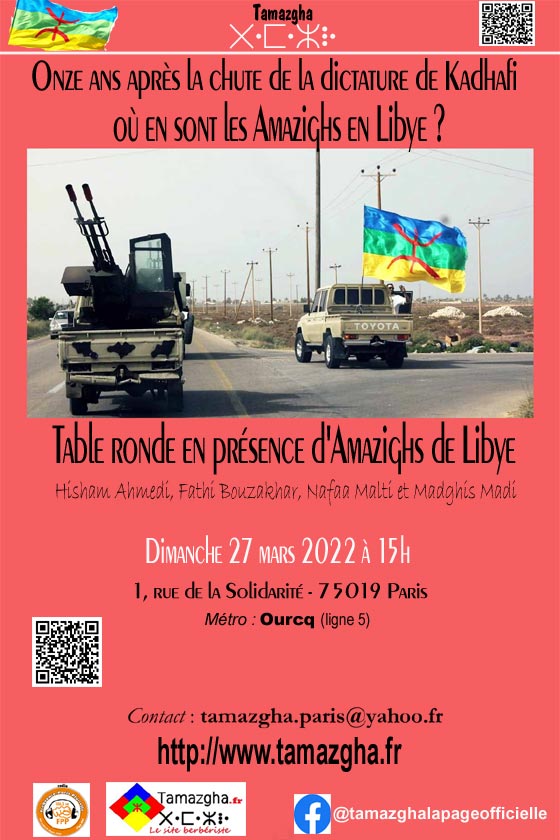 Table-ronde avec des Amazighs de Libye, samedi 27 mars à Paris.