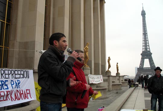 Lahoussaine Outachfit, Président de Tamaynut-France (Clichy), dénonce la politique anti-amazighe de Kadhafai, une politique négatrice de la démocratie également. Il a tenu a noté les déclaration farfelues de Kadhafi qui se permet de diffuser des informations mensongères sur l’Histoire des Imazighen, tout cela dans le but de nuire aux Imazighen. Il réitère la solidarité de son association avec l’ensemble des Imazighen, à travers Tamazgha, qui souffrent au quotidien des injustices que leur font subir les États en place en Afrique du Nord.