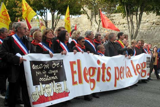 Le Parti occitan avait, bien entendu, appelé à la manifestation du 24 octobre pour réclamer, une fois de plus, un avenir et des moyens pour la langue occitane. Dans sa déclaration, le parti estime que "si en 2008, la République française a reconnu l’existence et la valeur des "langues régionales" en les admettant dans la Constitution", ce n’est pas pour autant qu’il y a eu des mesures concrètes "pour assurer leur existence, malgré la promesse d’une loi pour 2009". Il reproche aux élus régionaux, à l’exception d’une petite minorité, de ne pas assumer leur "responsabilité historique face à la disparition de l’identité occitane".