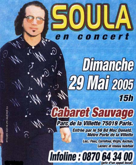SOULA en concert au Cabaret Sauvage (Paris) le dimanche 29 mai 2005 à 15H00.